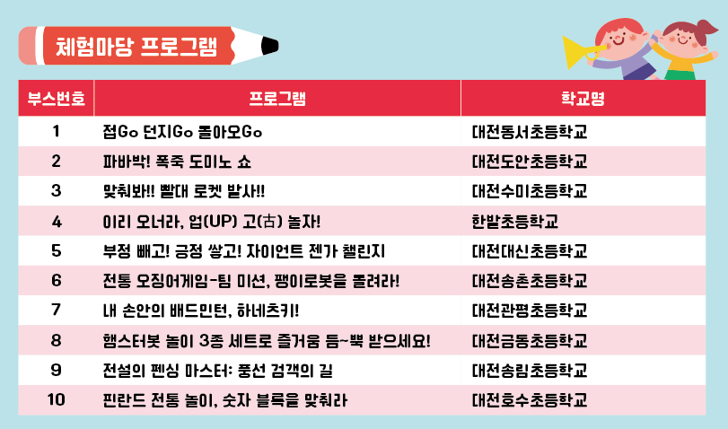 - 대상: 유치원생, 초등학생, 특수교육대상학생, 학부모, 시민 등